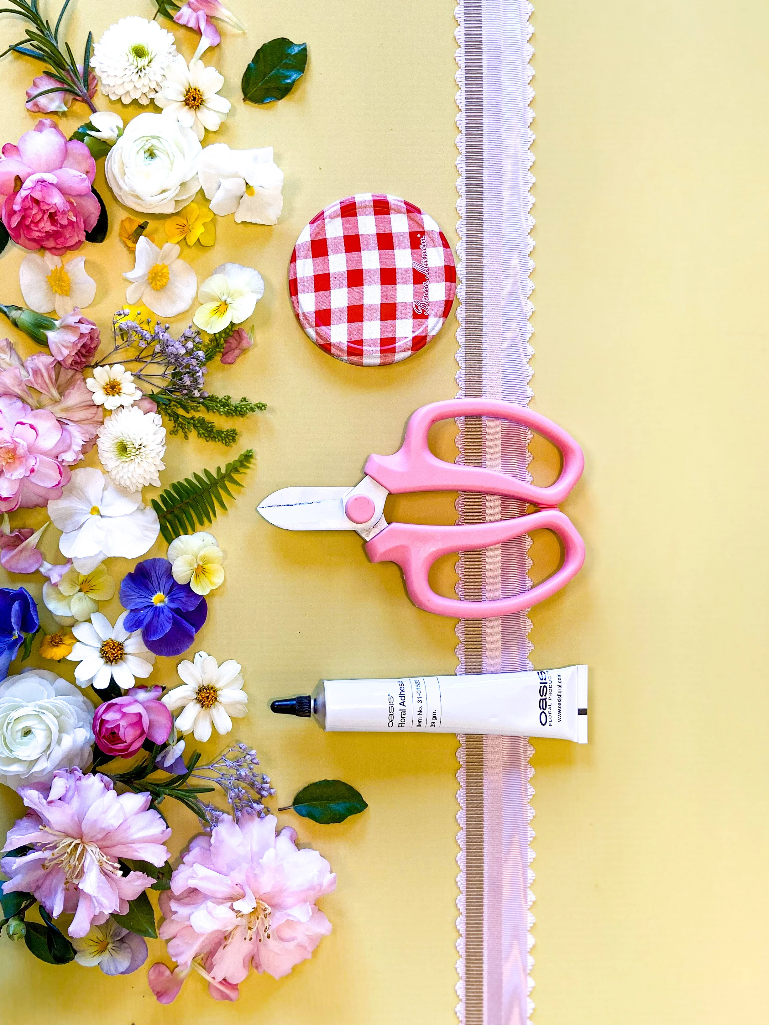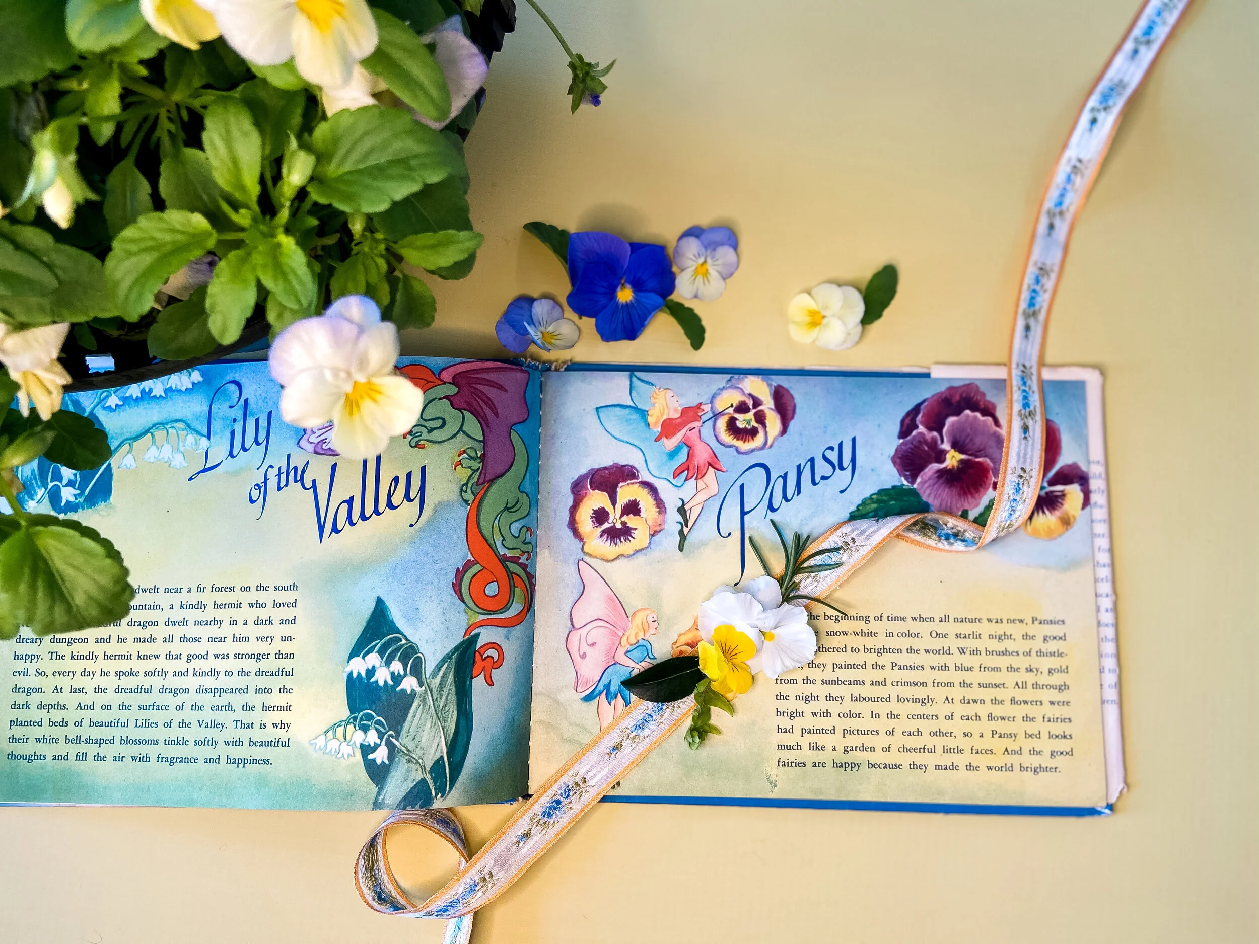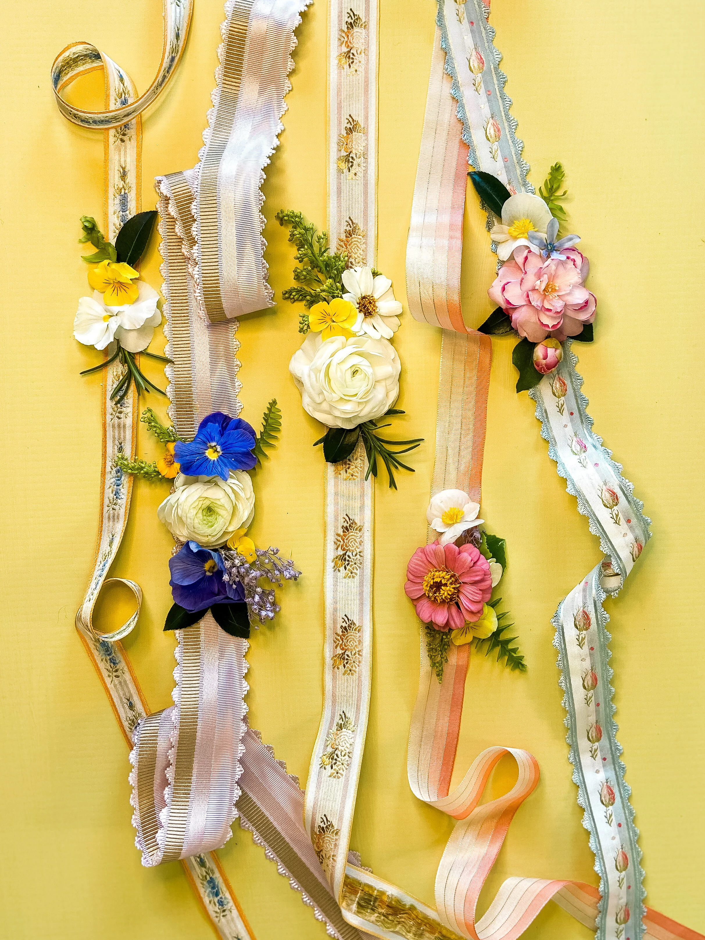 There are so many options for corsages, and using ribbons is my favorite! They give so much diversity to the design. Corsages are one of the most fun things to make and each is customizable with different ribbons and flowers. I love the small details of each one. They are a great way to use any broken stemmed flowers that you have on hand while designing or any small blooms that you happen to have growing in the yard. I was so happy for this tutorial that my pansies and camellias happened to be in bloom!